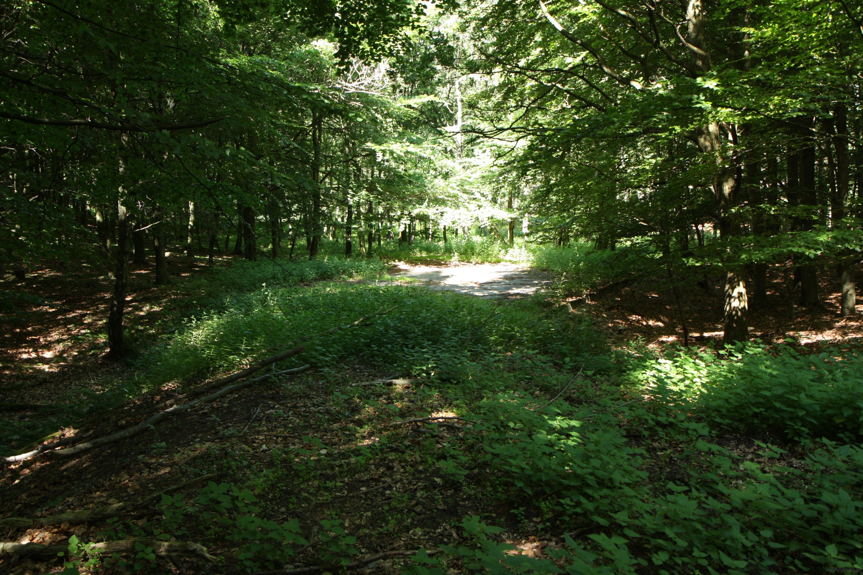 Tittar man på denna vackra bokskogklädda kulle är det svårt att komma på tanken att någon skulle gömma något dödsbringade här. Detta är den södra infarten till grupperingsplatsen.