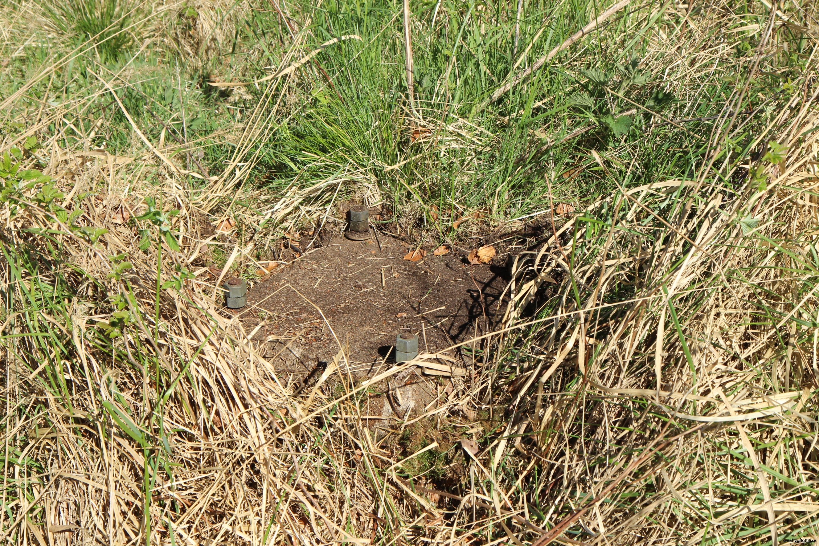 Platta 4 en dag mitt i sommaren. Det är näst intill omöjligt att komma fram i terrängen på grund av stora mängder med brännässlor. Det är också omöjligt att se de övriga plattorna då dessa skyms av frodig grönska.