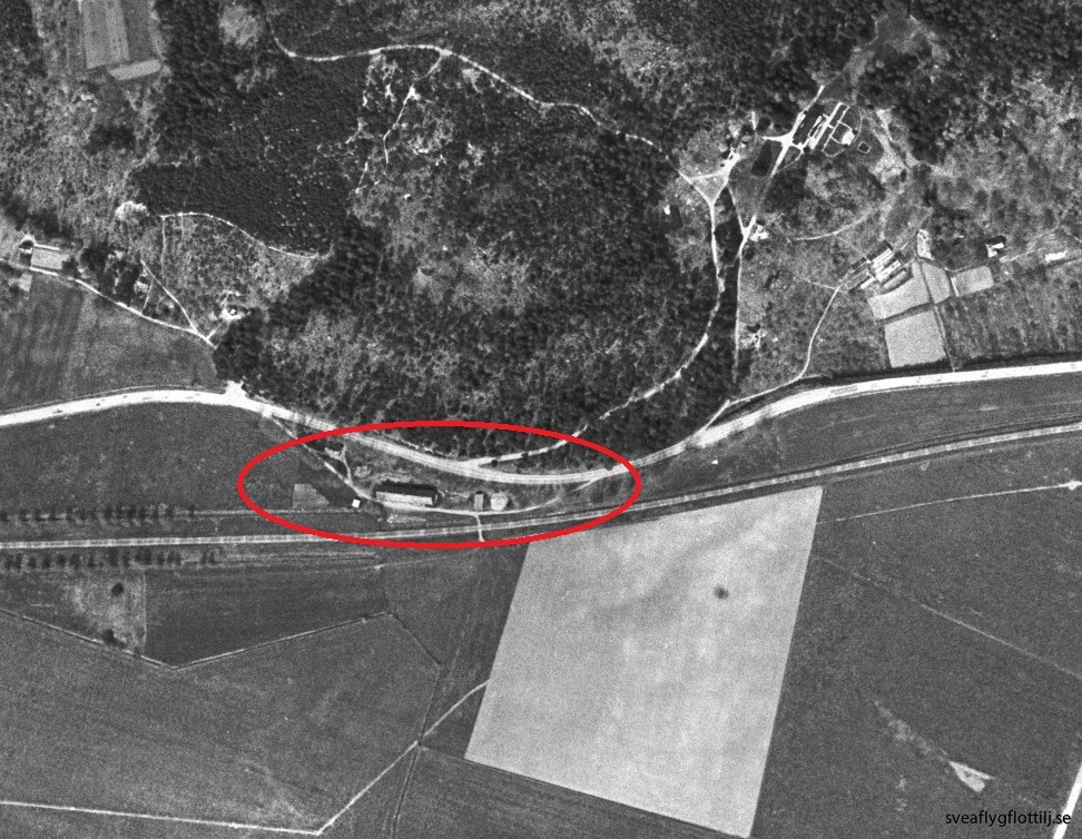 Denna bild är från tiden innan motorvägen byggdes. Vägen som går rakt genom bilden är dåvarade E 4:an, idag heter den Nyköpingsvägen. När Robot 68 var i tjänst var motorvägen byggd och den går då snett över bilden och upp i Kolmården framför Hotell Stenkullen som är den stora byggnad som syns uppe i höger hörn.