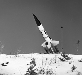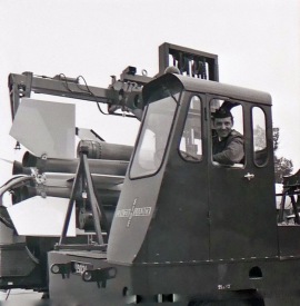 Detta fordon lånade man från England för att hantera robotar med innan robotlastbilarna var levererade. Dessa levererades enl uppgift tidigt 1965. Denna bild är alltså tagen innan dess.