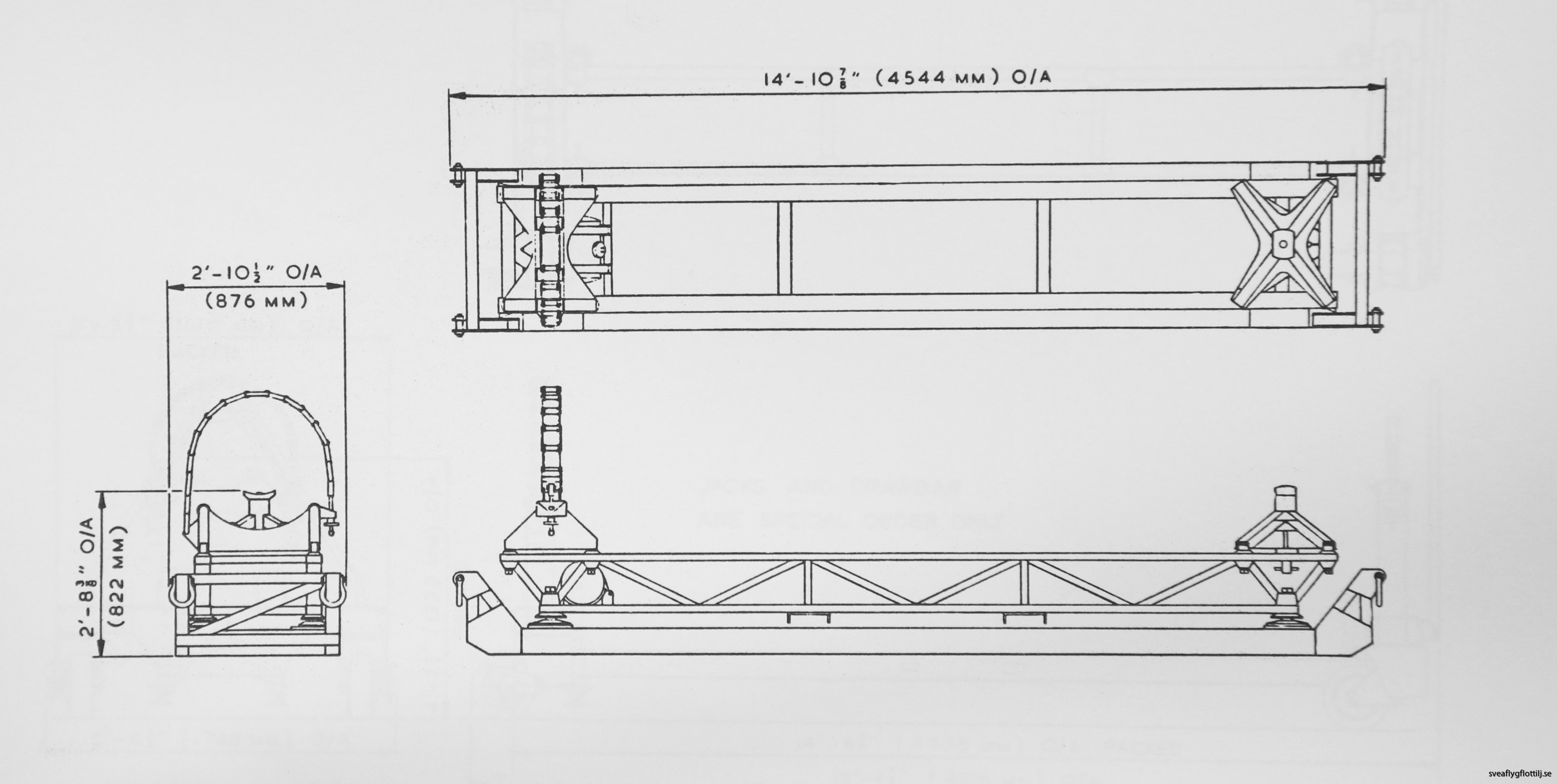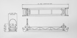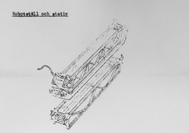 Robotstället från alla vinklar. Mått finns i skissen. Här syns också de öglor som stativets krokar fästs i.