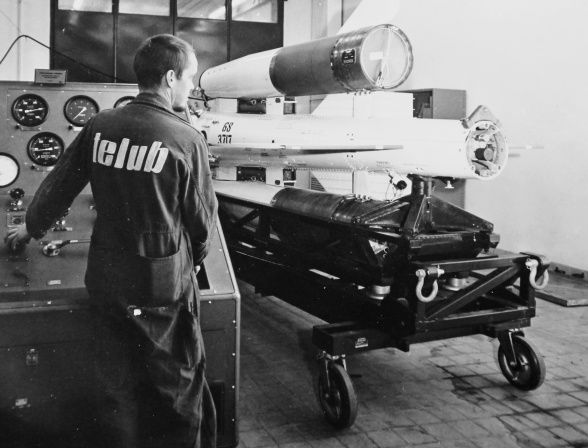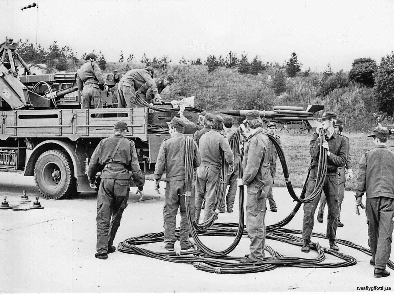 Även denna bild är från F 8. I bakgrunden ser vi en blindrobot liggande på robotställ på plan mark.
