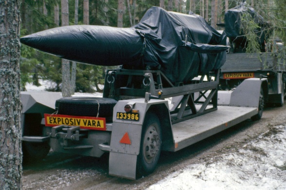F 10 fredsgrupperingsplats. I bakgrunden ser vi en robot som ligger på en hanteringsvagn.