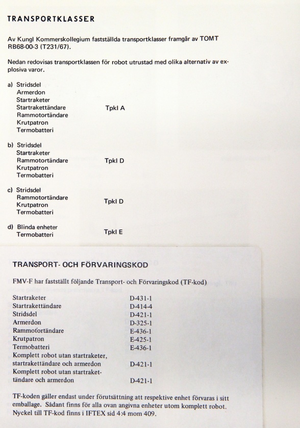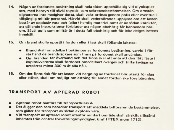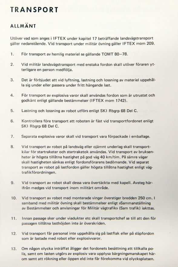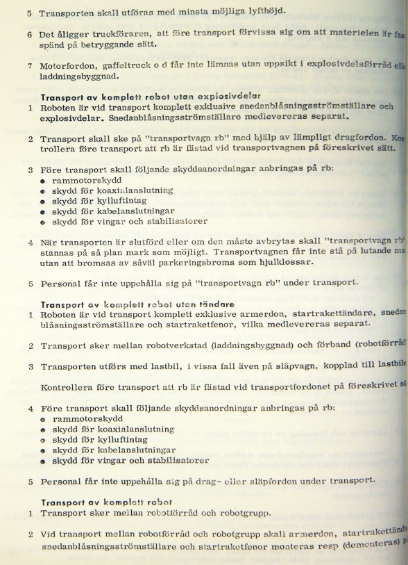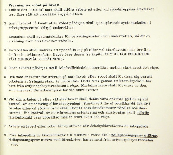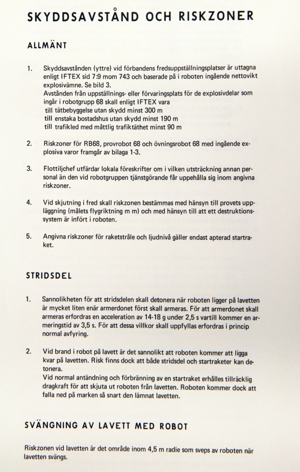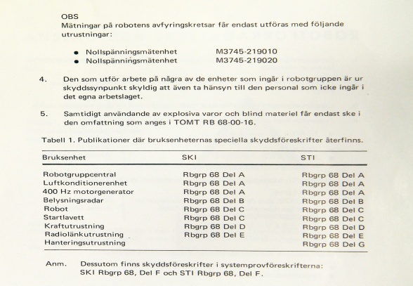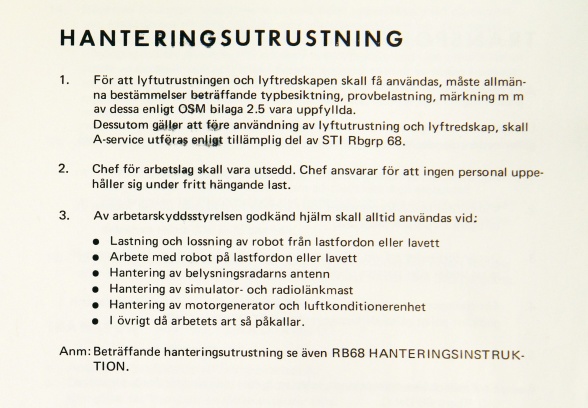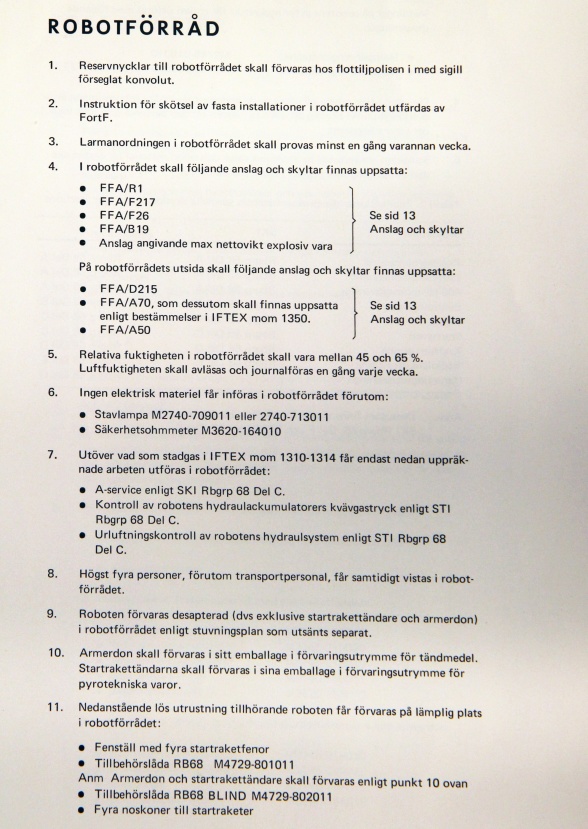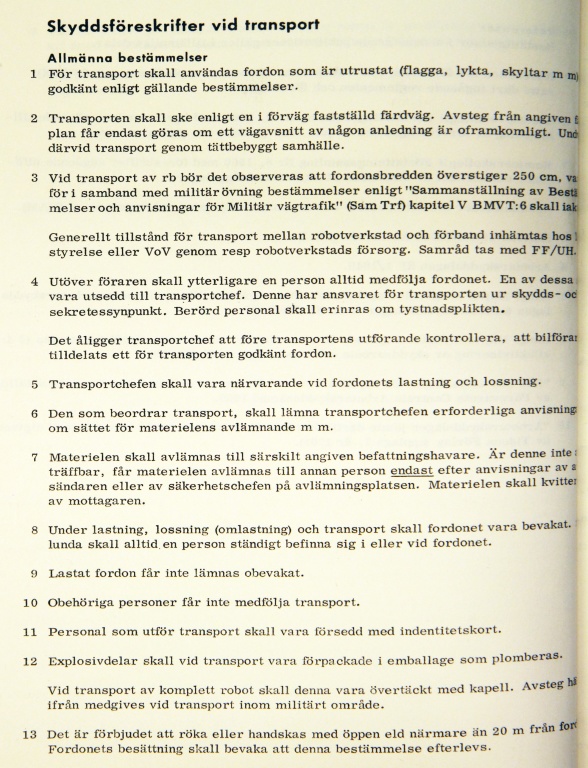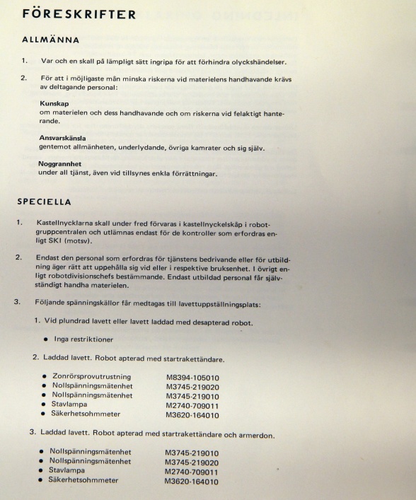 Detta stycke är en sammanfogning av två dokument, ”Allmän skyddsföreskrift robotgrupp 68” samt ”Robotsystem 68 allmän skydds- och transportföreskrift”.