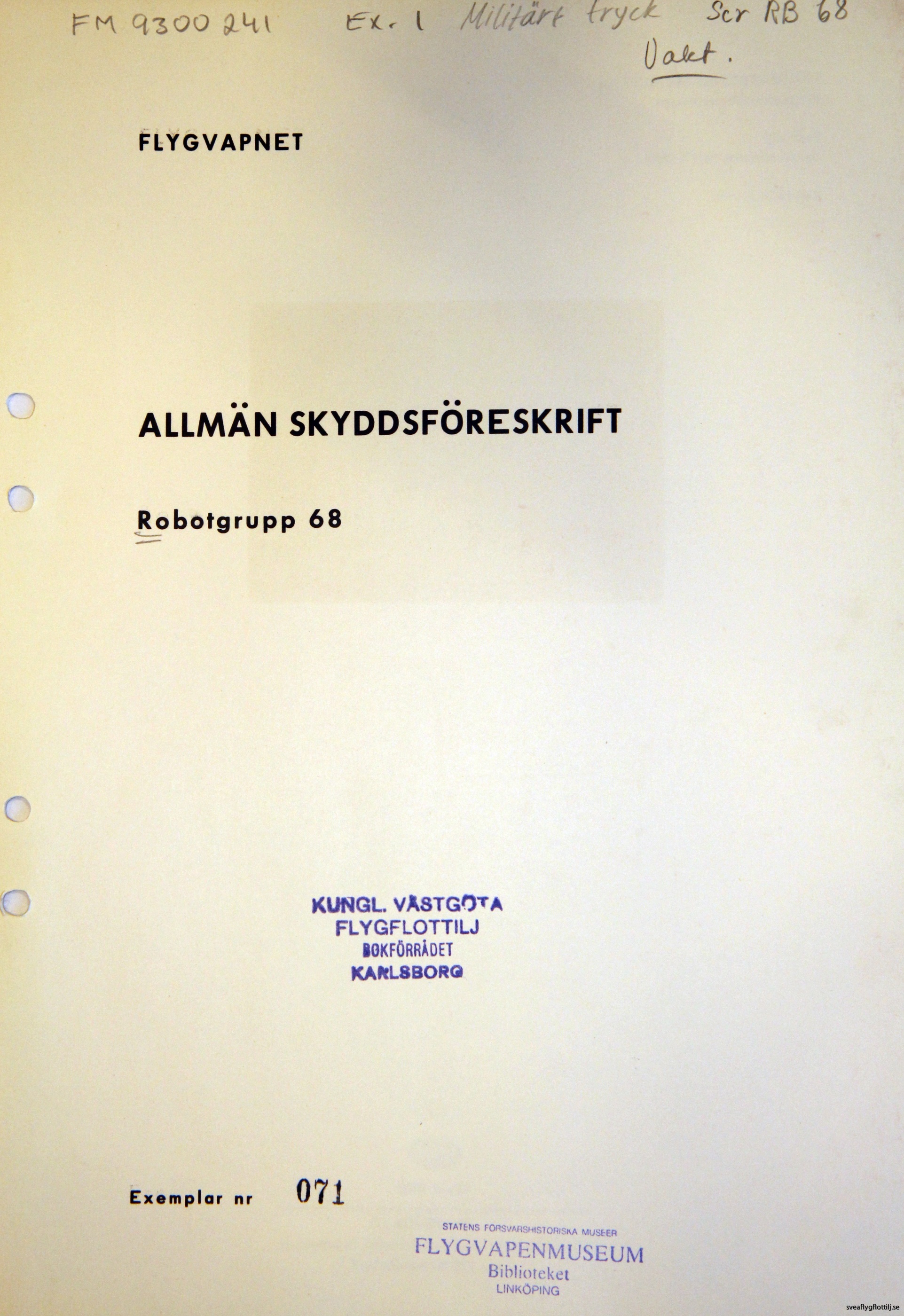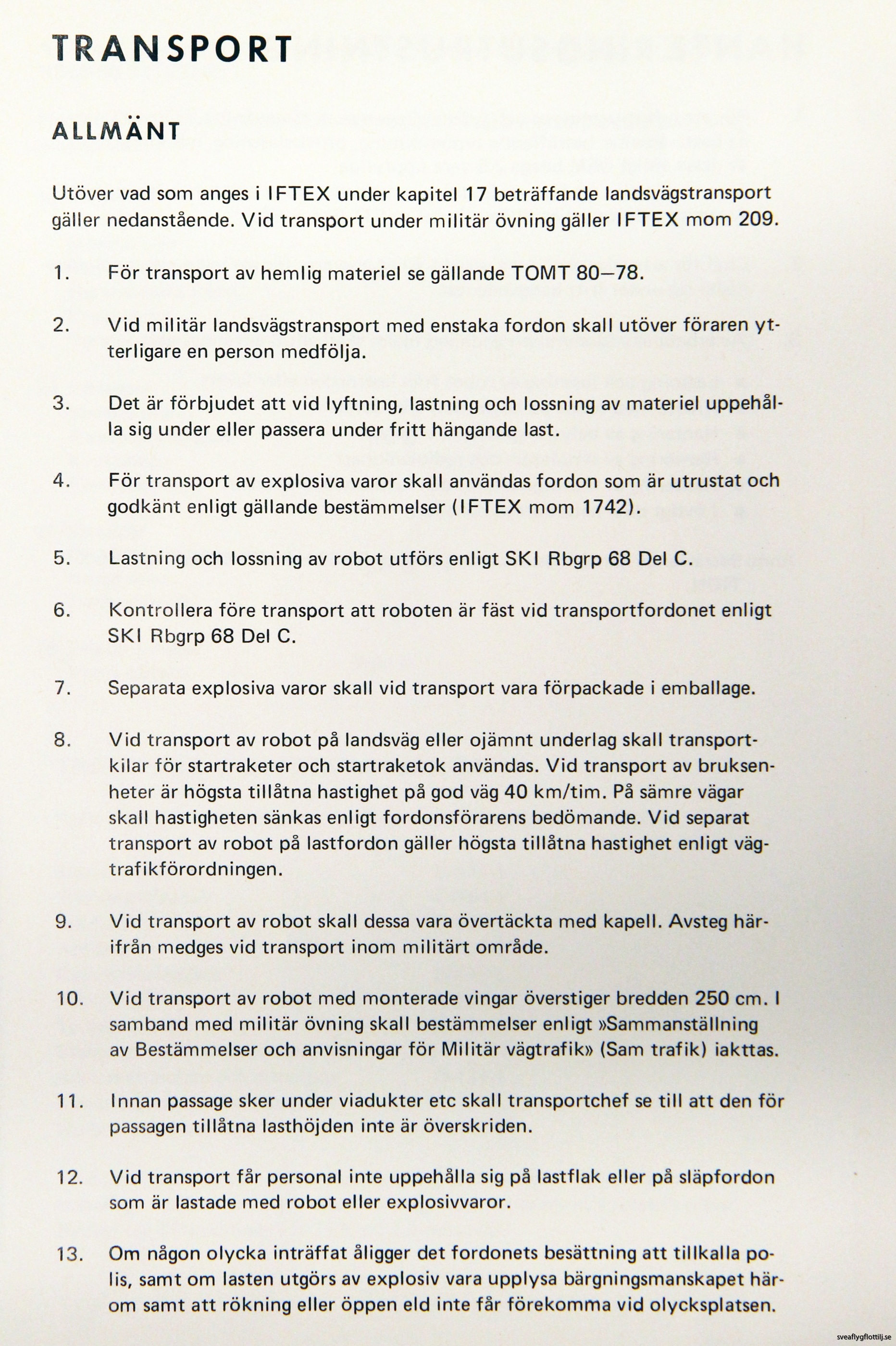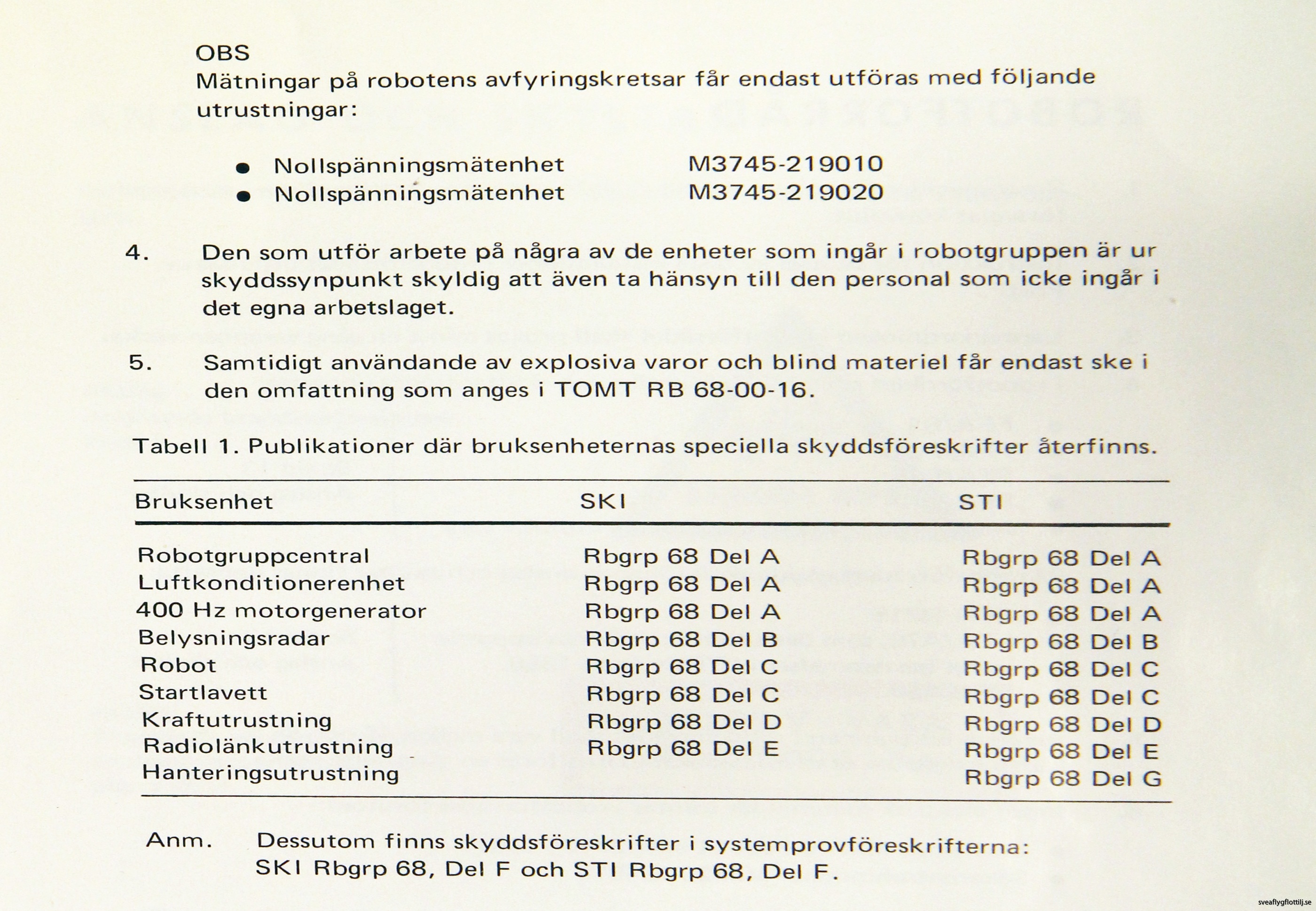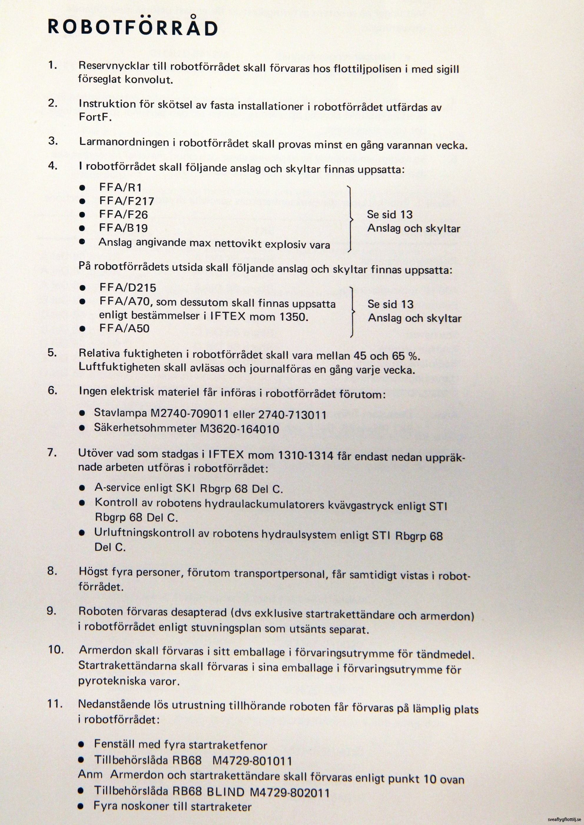 Detta stycke är en sammanfogning av två dokument, ”Allmän skyddsföreskrift robotgrupp 68” samt ”Robotsystem 68 allmän skydds- och transportföreskrift”.
