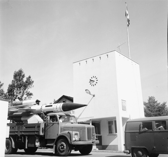 18:e maj 1968. Första skottet med robot 68-systemet ska göras med individ 4756, dock misslyckas avfyringen och 4756 står kvar på lavetten. Läs mer om detta under F 8, skarpt läge i norr. Denna bild är alltså tagen i samma ögonblick som alla inser att något gått snett.