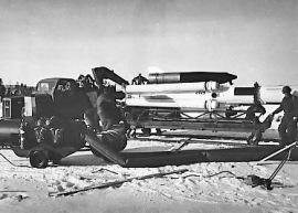 Denna bild är tagen vid samma tillfälle som bilden till vänster, roboten är antingen 4756 eller 4758, omöjligt att se om det är en 6:a eller 8:a på slutet. . 4756 var den första robot där robotstridsledare tryckte på FIRE den 18/5 1968, men ett fel gjorde att roboten inte startade. Istället sköts 4758 dagen efter. Vad som kan blivit 56:ans slutliga öde finns förklarat på annat ställe i detta stycke.