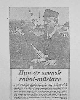 Den 21 juni 1971 överlämnar Carl von Koch, F 13, vandringsroboten till Göran Svensson, F 10. Detta skriver två lokal tidningar om dagen efter.